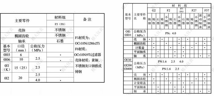 | F8 | 材料組代號,殼體、橢圓齒輪為304不銹鋼材質(zhì) | |
