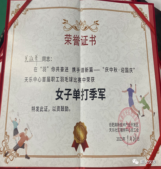 9月26日,我公司職工吳淑芹代表合肥精大儀表股份有限公司參加此項比賽,在她不斷的努力和拼搏下獲得了女子單打季軍,為亞運會(huì )以及即將到來(lái)的雙節獻禮!