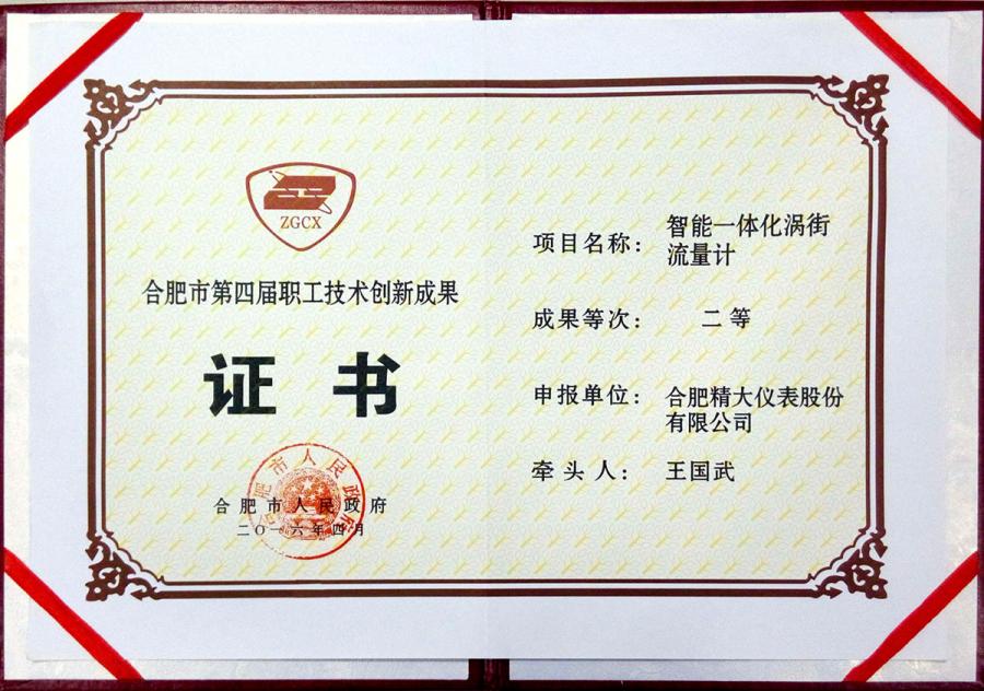 職工技術(shù)創(chuàng )新成果二等獎證書(shū)