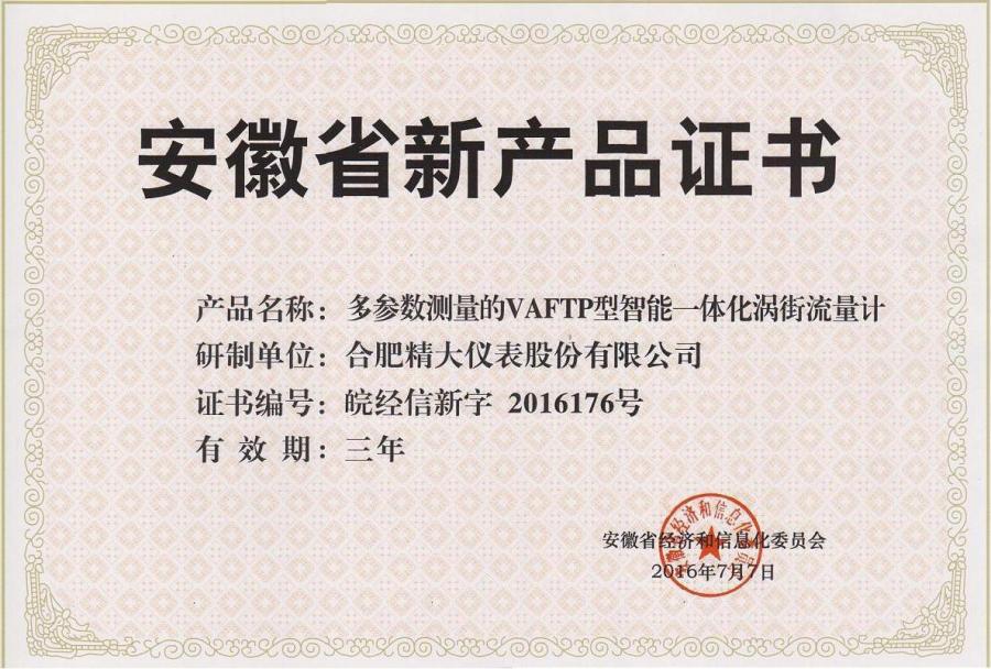 安徽省新產(chǎn)品證書(shū)(VAFTP型)