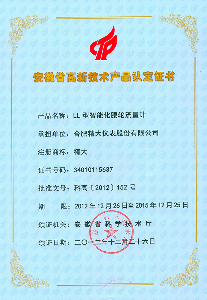 省高新技術(shù)產(chǎn)品認定證書(shū)(LL型腰輪)